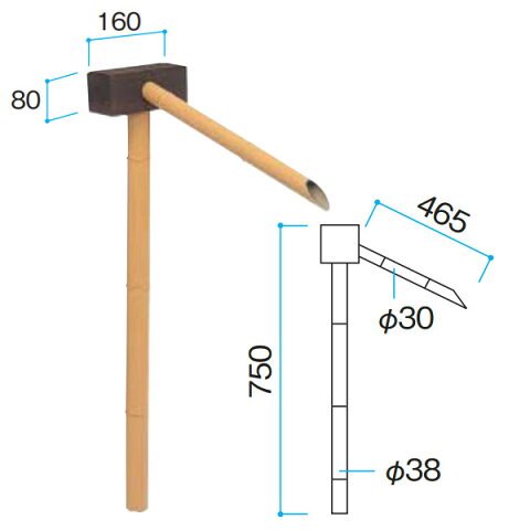 商品名 合成竹カケヒ 2.5尺[KK-4] タカショー サイズ 幅16cm×奥行46.5cm×高さ75cm 素材 本体:AS系樹脂 駒頭:天然木(栂) 完成品 備考 水の注ぎ部:φ30mm 支柱:φ38mm 対応ホース:φ〜25mm※ホースは付属しておりません。